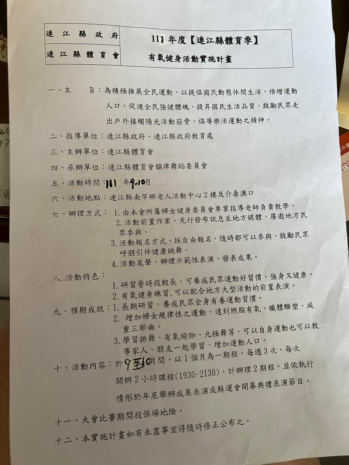 111年體育季有氧健身活動實施計劃