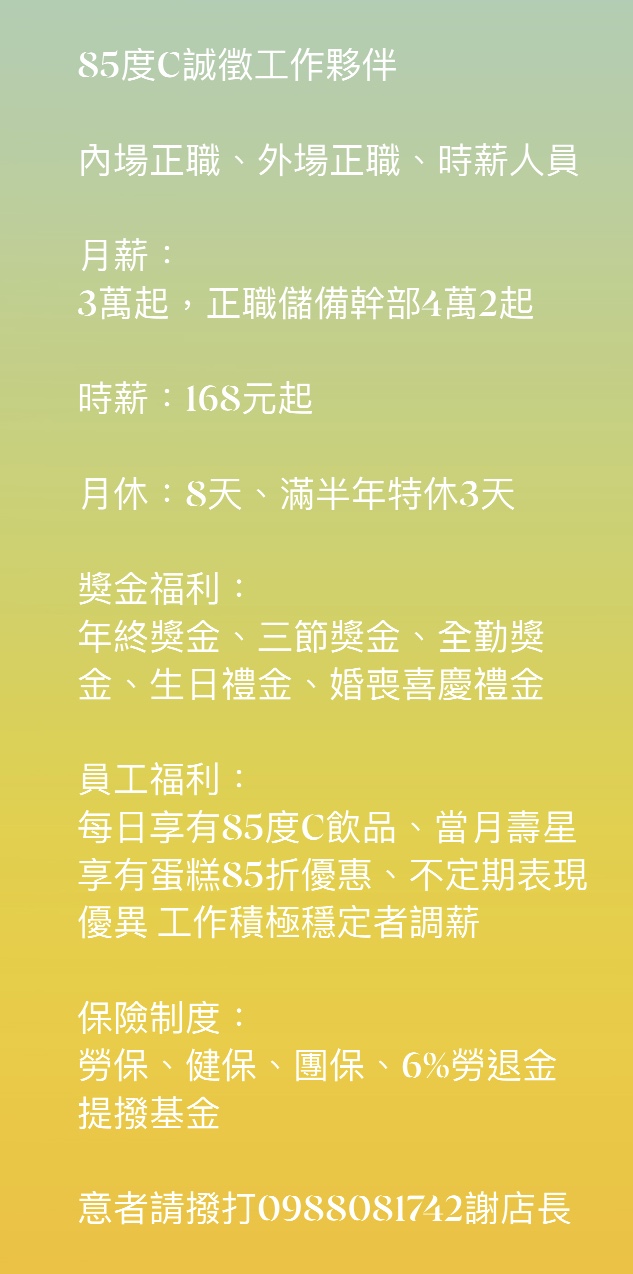 85度C誠徵工作夥伴