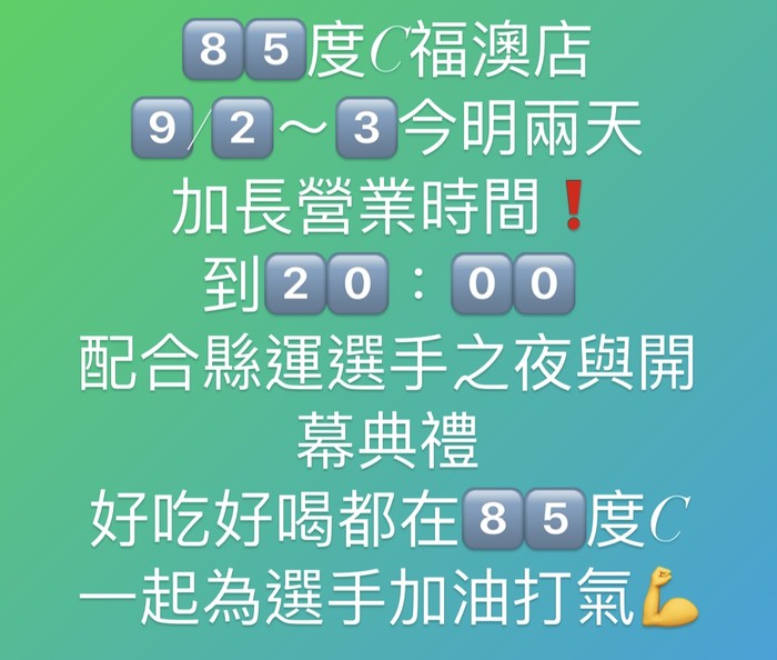 85度C福澳店加長營業時間