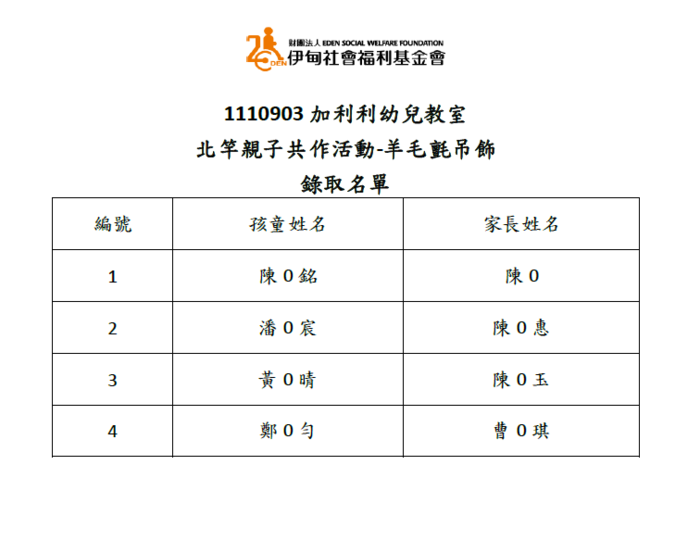 再次提醒錄取的家庭在9/3早上10:00請準時報到入場