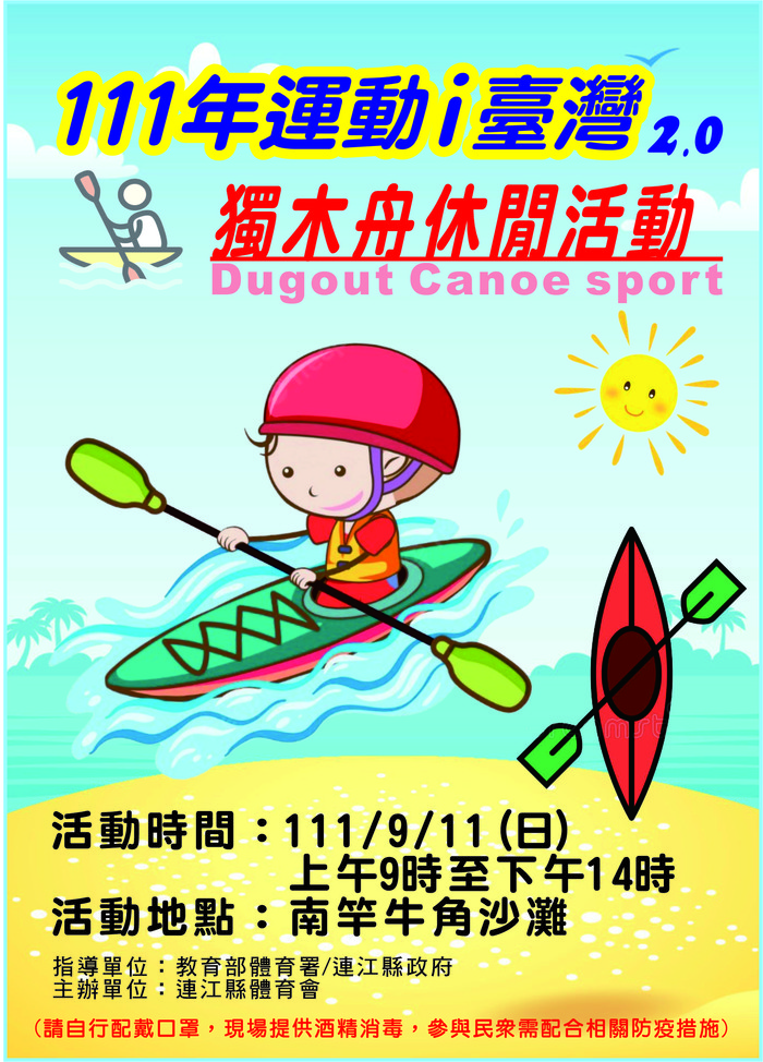 連江縣體育會 獨木舟休閒活動-南竿場 --閱讀人次 : 1159 一、目的
