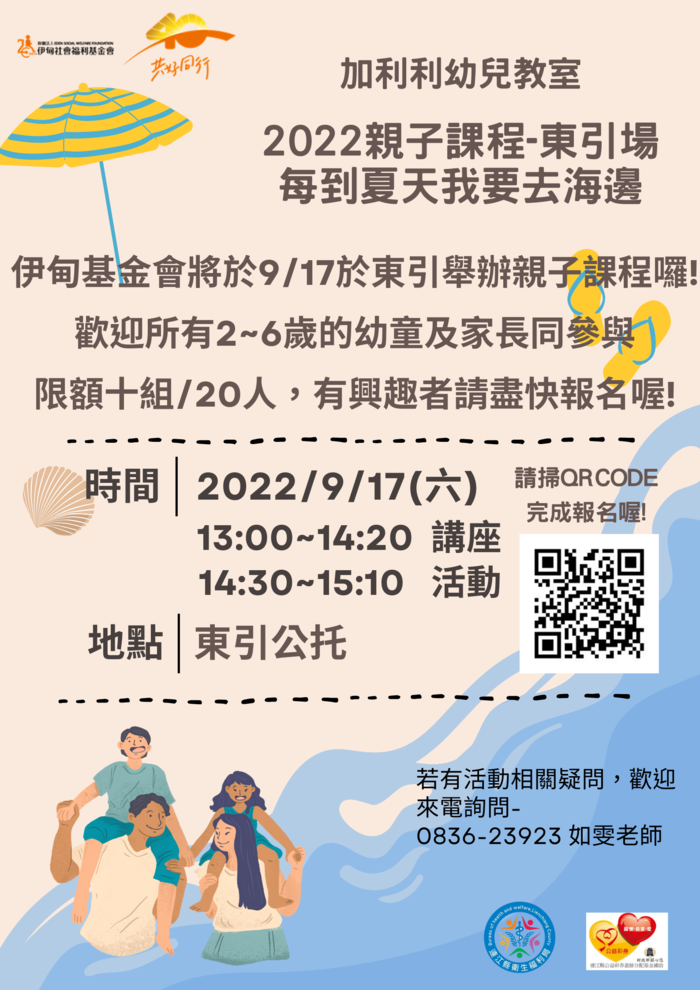 將於9/17(六)到東引舉辦親職講座及親子課程