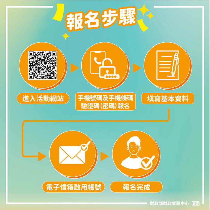 報名方式:7/1 上午 11點 開放報名,進入活動網站 ➡ 以手機號碼及手機條碼驗證碼(密碼 )報名 ➡ 填寫基本資料 ➡ 至電子信箱啟用帳號 ➡ 完成報名!