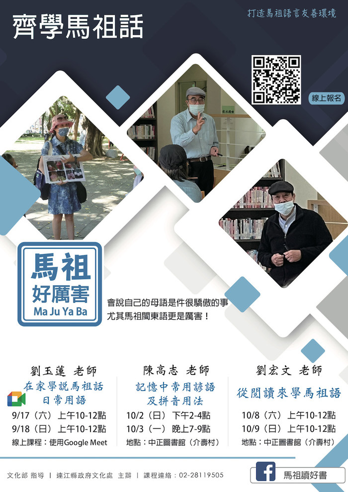 9/17-18馬祖日常會話線上課程 --閱讀人次 : 679 為推廣馬祖閩東語及母語傳承,