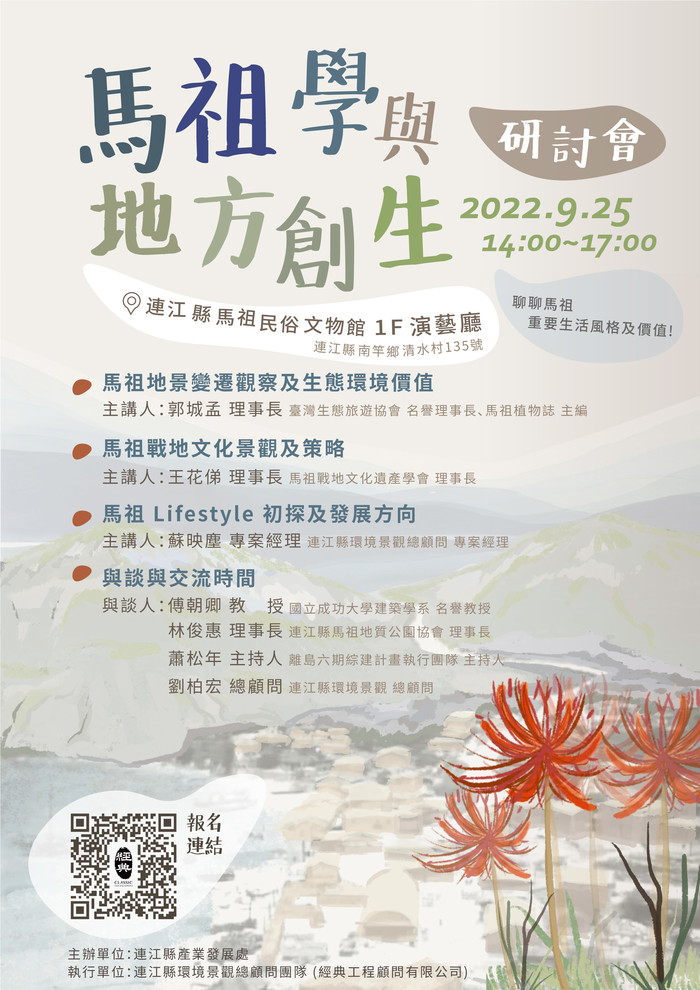 「馬祖學及地方創生研討會」活動報名 --閱讀人次 : 754 ✨9月25日「馬祖學及地方創生研討會」熱情邀請大家來參與~~~✨