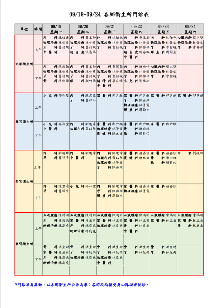 本周臺北市立聯合醫院心臟內科留以堅醫師及眼科顏竹佑醫師會到北竿、東西莒衛生所服務。