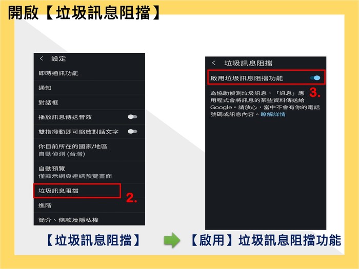 √開啟安卓系統垃圾訊息阻擋功能