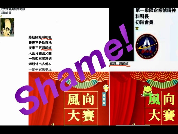 來自 : 小猴特徵:一人分飾多腳,開版洗版洗讚,選舉階段尤為得到本站『長官』關愛眼神,模糊地帶助其抹黑、抹黃、造謠 ,毫不稍加制止!兩方勢力精誠團結,早中晚加夜場,塗饃屎尿洗黑候選人,純手工加大肚爛票輸出塔綠班