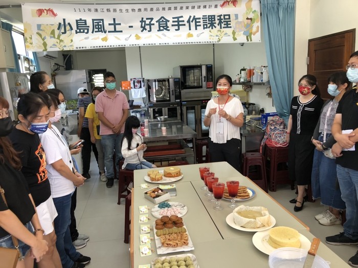 特邀烘焙名家、台灣專家團隊、以及小島回鄉青年共譜一場島嶼浪漫甜品饗宴!由行政院農業委員會水土保持局指導、連江縣縣府與連江縣產發處共同推廣的「小島風土-好食手作系列課程」,18日下午於南竿曾美子老師個人工作室,產發處曹明君科長說明此次以島嶼原生花草為靈感手作甜品的發想,邀請烘焙專家芹沃咖啡烘焙坊曾美子老師、有春茶館京越國際股份有限公司創辦人陳沛瀅、全國大飯店行政總主廚李坤昌一同參與。