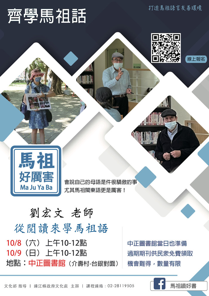10/8-9宏文老師-閱讀學馬祖話課程 --閱讀人次 : 694 文化處齊學馬祖話系列課程,