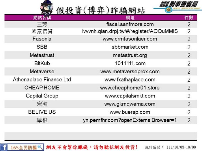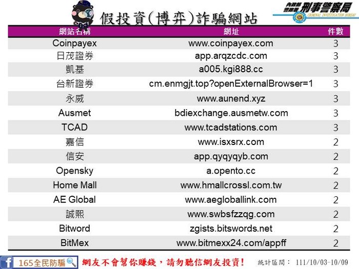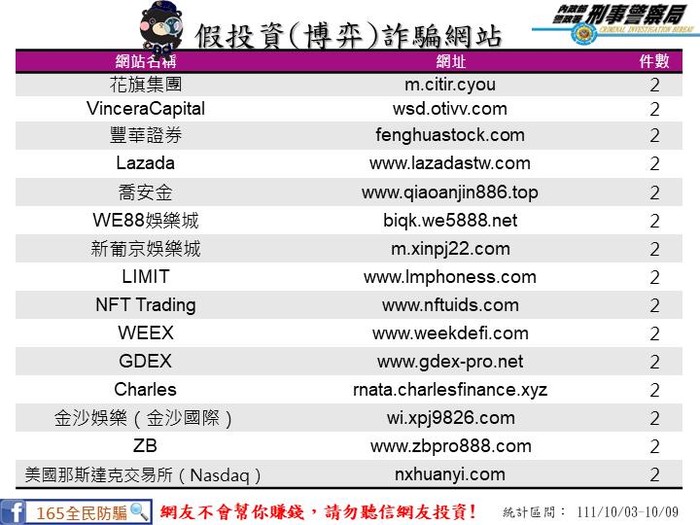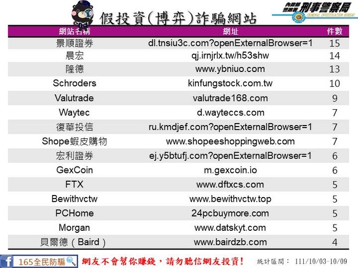 上週民眾通報假投資網站 --閱讀人次 : 923 【111/10/3-111/10/9民眾通報假投資網站】
