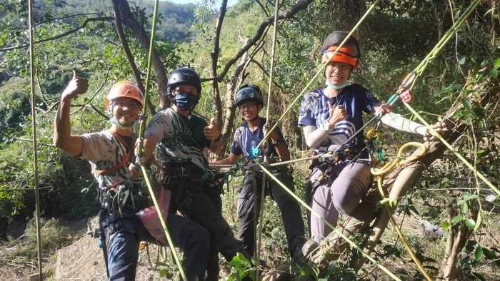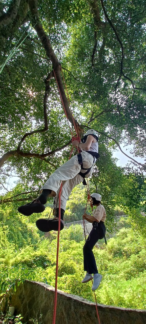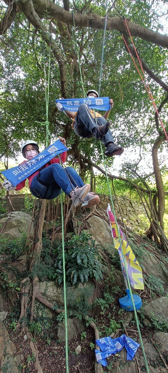 本日透過冒險教育的方法,以樹冠層攀樹活動執行個人及團隊探索任務,透過體驗過程感受人與環境的關係。