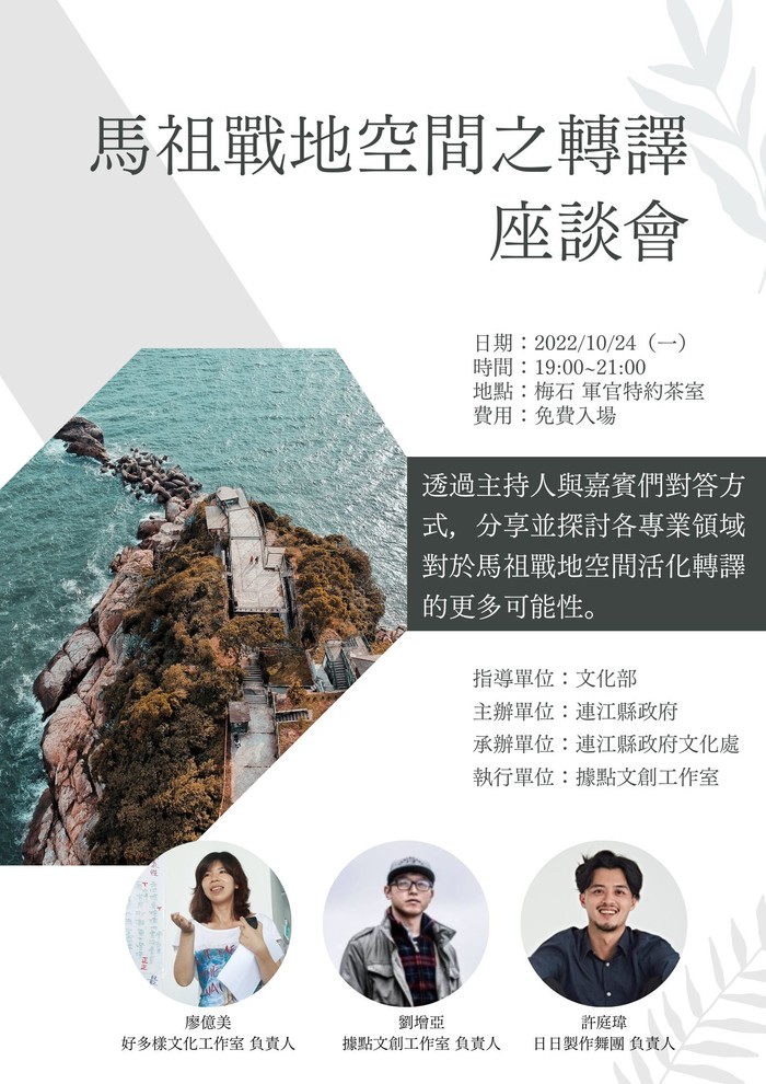 「馬祖戰地空間之轉譯」座談會 --閱讀人次 : 628 日期:2022/10/24(一)