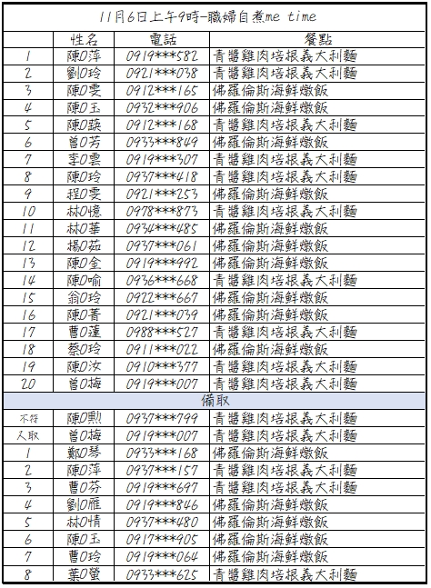 「職婦,自煮食光」入取名單 --閱讀人次 : 1546
