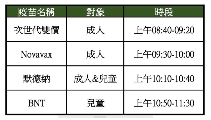 縣立醫院每週三新冠疫苗施打分流公告&疫苗時段調整