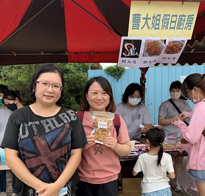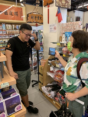 圖為 韋桂珍老師 實地走訪與商家相談甚歡