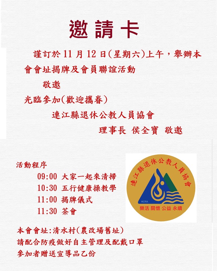 本會舉辦會員聯誼活動及會址揭牌儀式,邀請全體夥伴及眷屬蒞臨參加,共襄盛舉。