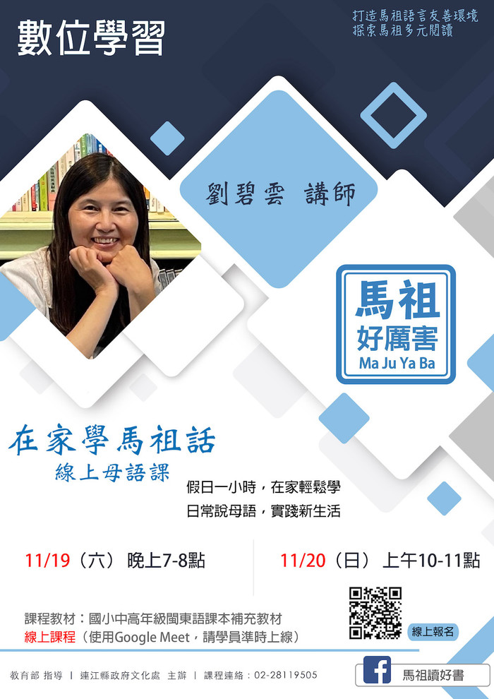 11/19週六 晚上7-8點 「在家學馬祖話-生活母語-上」