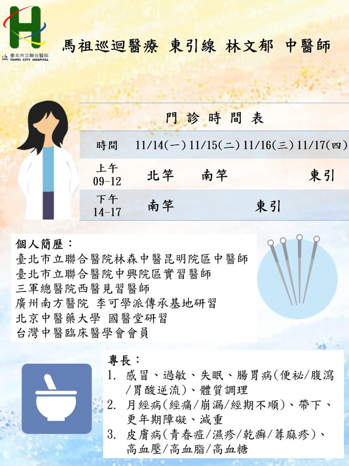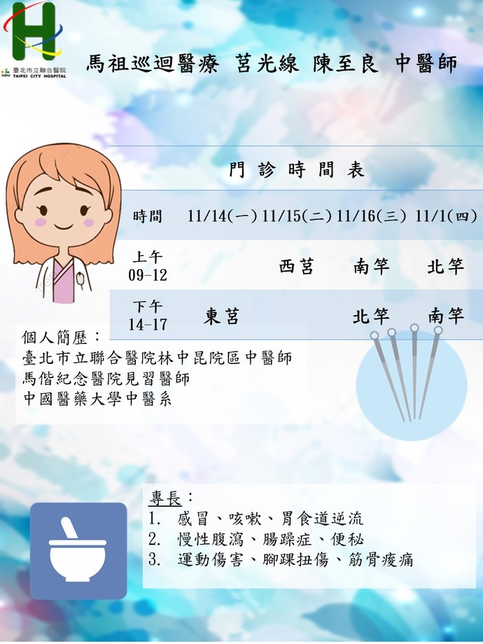 馬祖中醫巡迴服務11/14-11/17