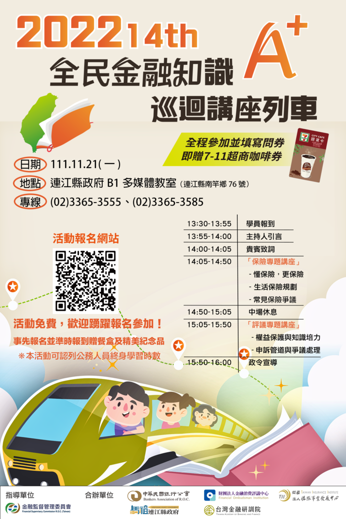 11/21全民金融知識A+巡迴講座列車活動_南竿場,歡迎民眾踴躍報名參加!