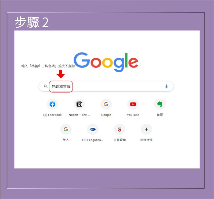 步驟2.輸入「林義和工坊官網」並按下查詢