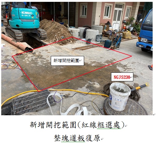 新增開挖範圍(紅線框選處) 整塊道板復原