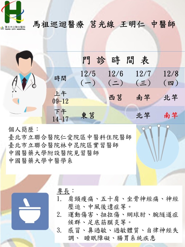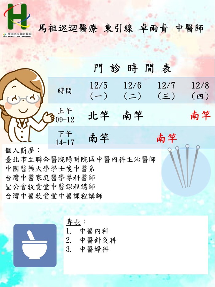 12/8(四)下午 南竿縣立醫院 正常看診。