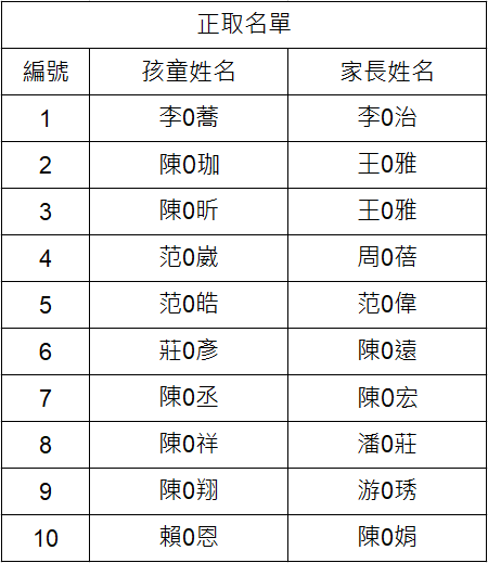 12/11(日)南竿場活動正/備取名單如下: