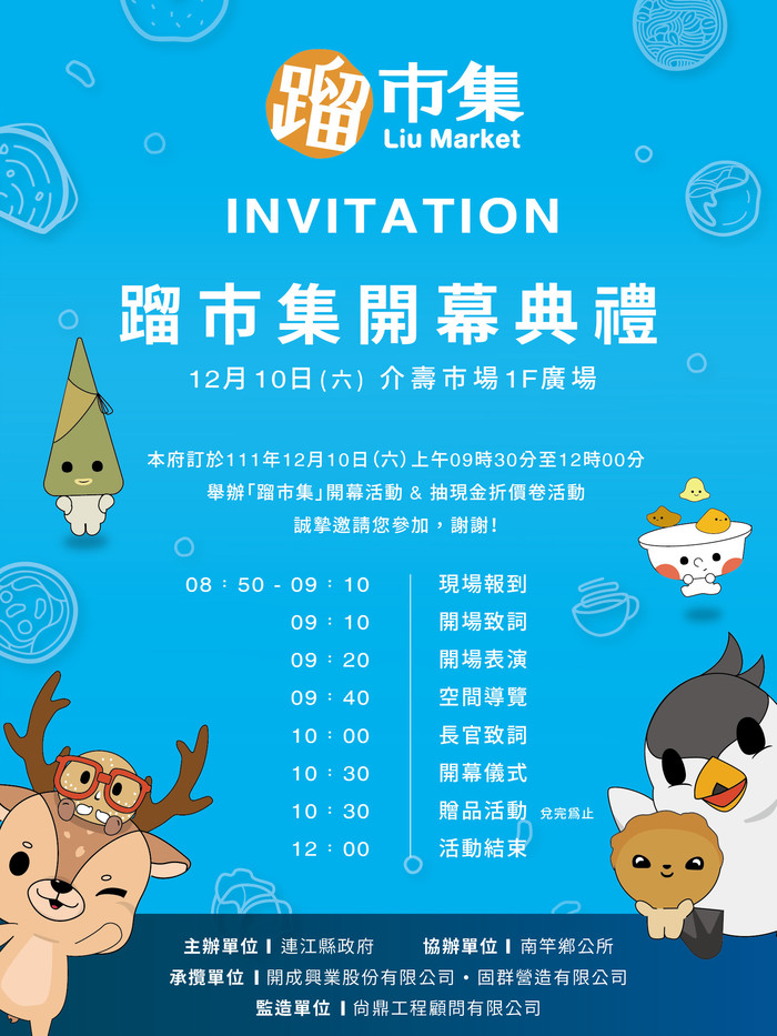 12/10(六)介壽市場開幕活動,早上8:30-11:00有交通管制請勿停車敬請見諒,歡迎大家來現場同歡抽現金禮卷,感謝!