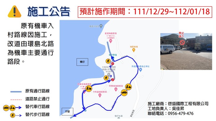 施工期間:111年12月29日至112年1月18日止