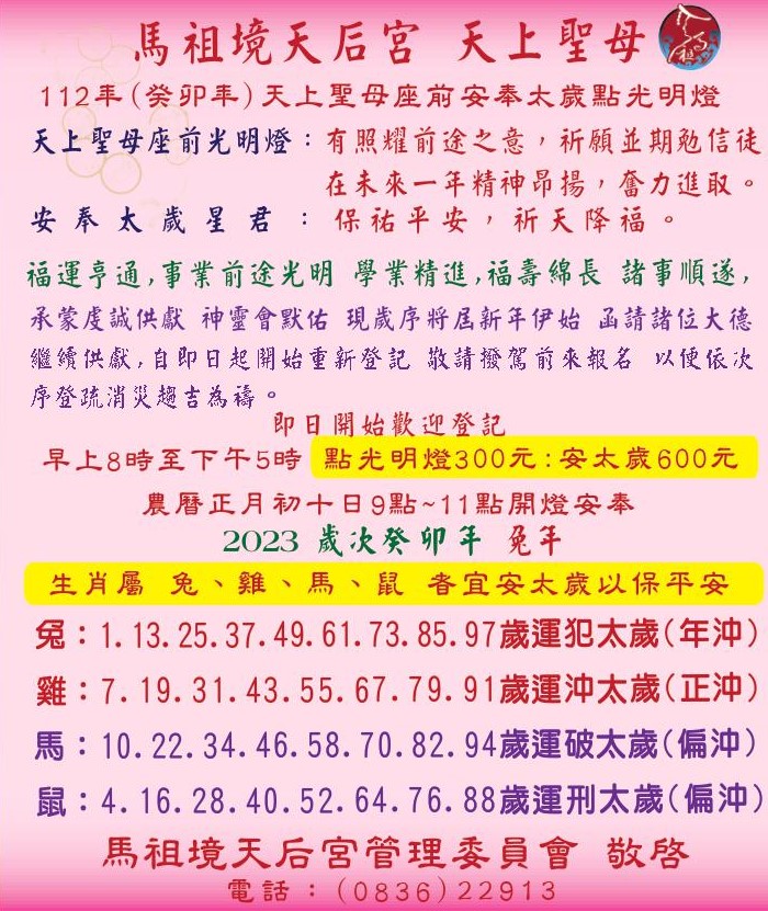 馬祖境天后宮112(癸卯年)點燈祈福