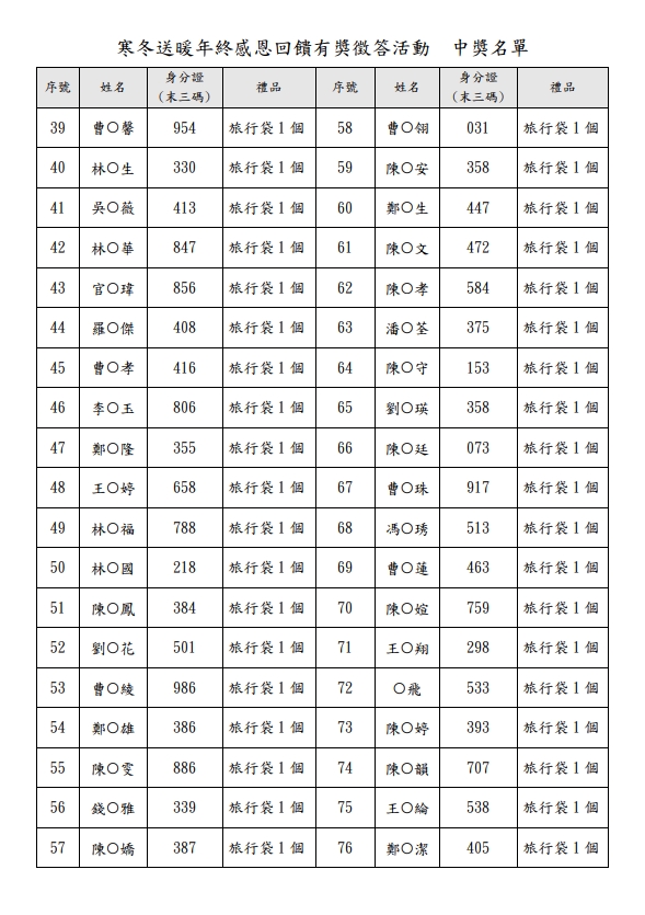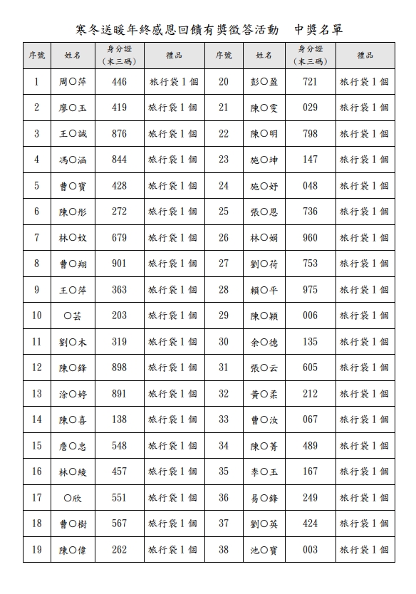寒冬送暖年終感恩回饋有獎徵答活動中獎名單-1