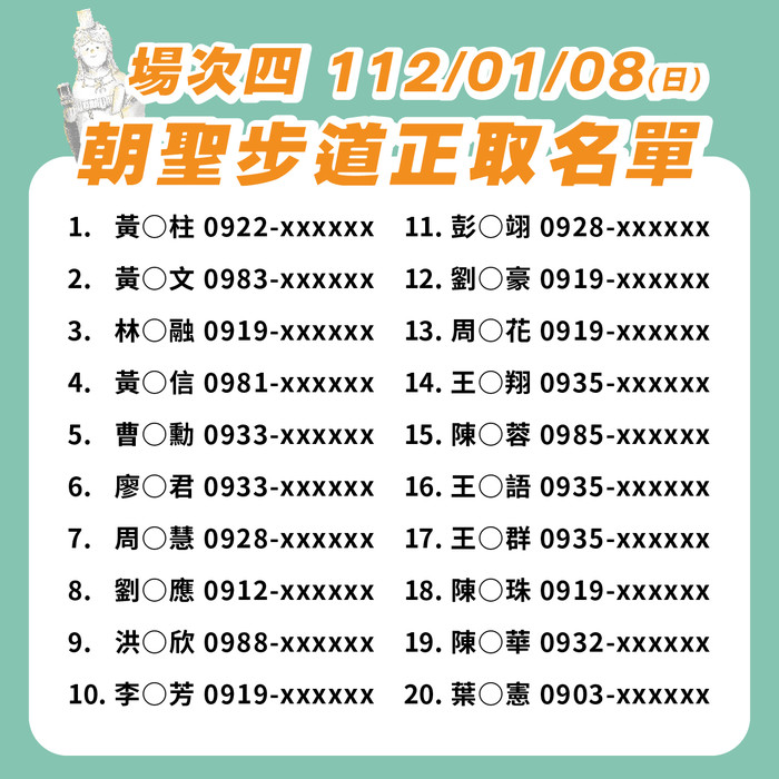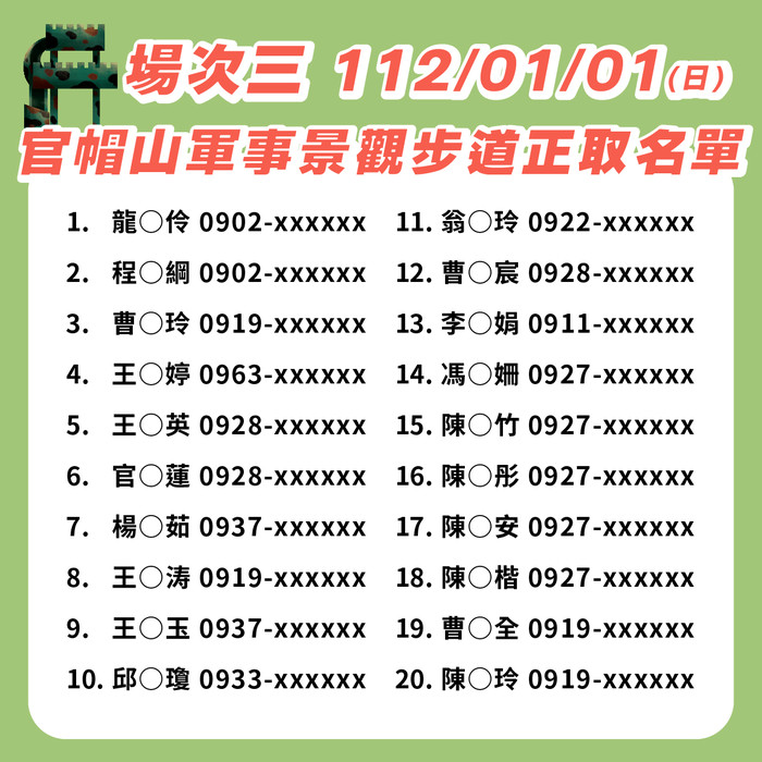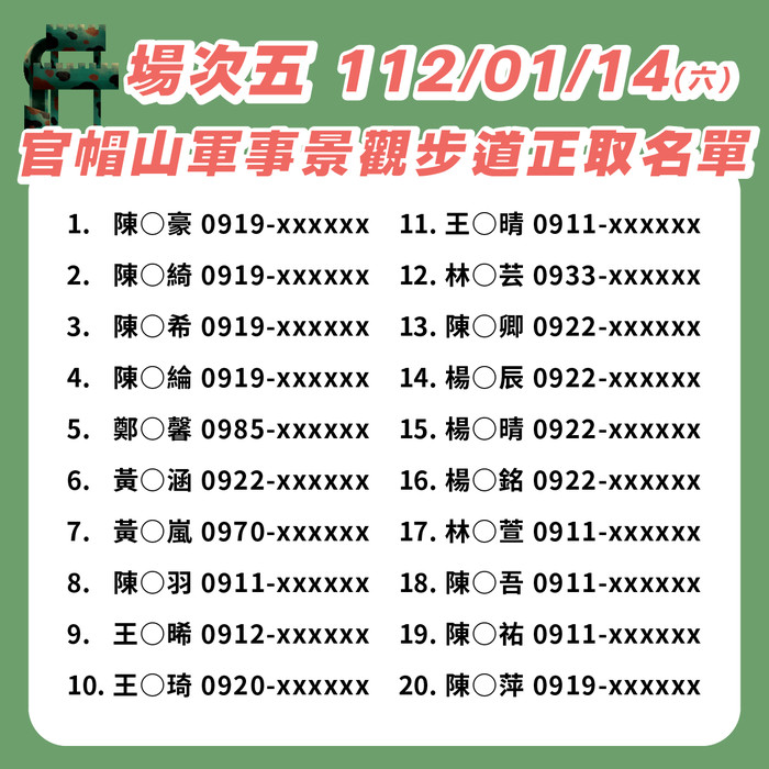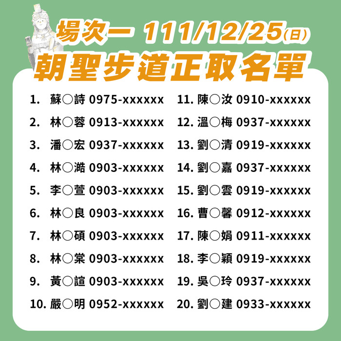 下方圖片即可確認各場次正取名單,