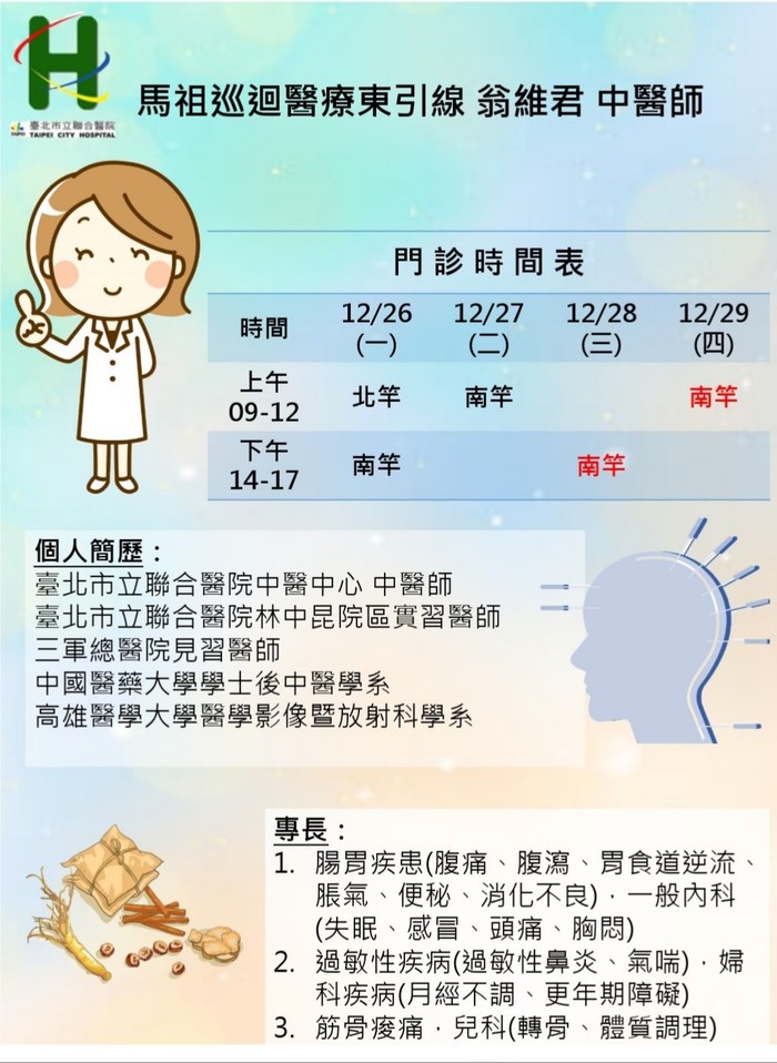 12/28(三) 下午 東引衛生所 ➔ 下午 南竿縣立醫院