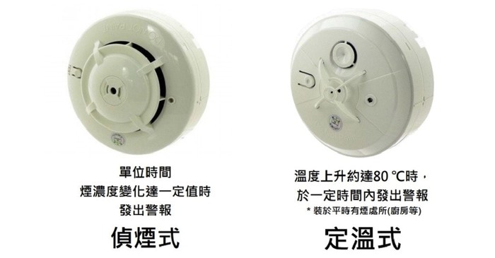 (2)定溫式住警器:當溫度上升至一定度時會發出警報,適用於廚房、神明廳等容易產生煙霧的地方。