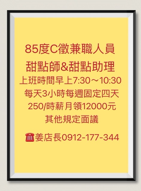 85度c誠徵甜點師