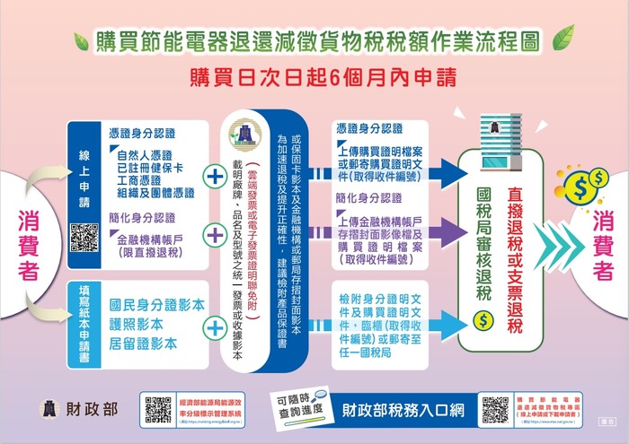 申請網址:https://www.etax.nat.gov.tw/etwmain/tax-info/purchase-energy-saving-appliance-reduced-commodity-tax-refund-area/form-download