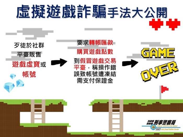 3、民眾若是匯款或購買遊戲點數的,對方就人間蒸發失去聯繫;被引導至假遊戲交易平臺的會連續被要求支付保證金,此時民眾才驚覺遇到詐騙了!
