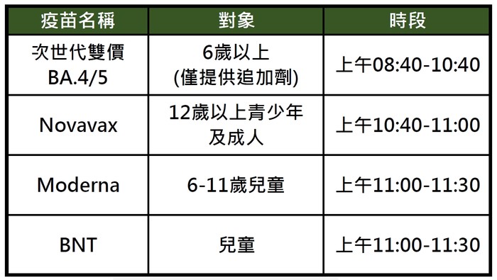 請依以下時段攜帶黃卡、健保卡報到及接種