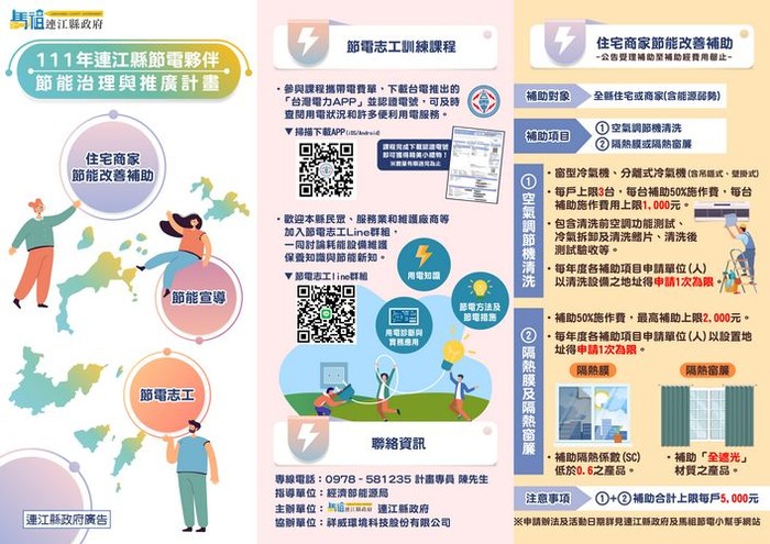 連江縣住宅商家節能改善補助申請受理中 --閱讀人次 : 1230 各位鄉親好,提供大家新的補助訊息