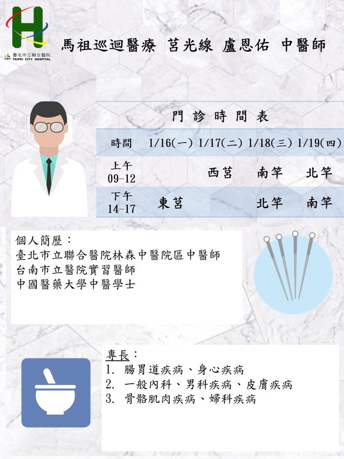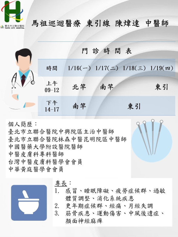 馬祖中醫巡迴服務1/16-1/19