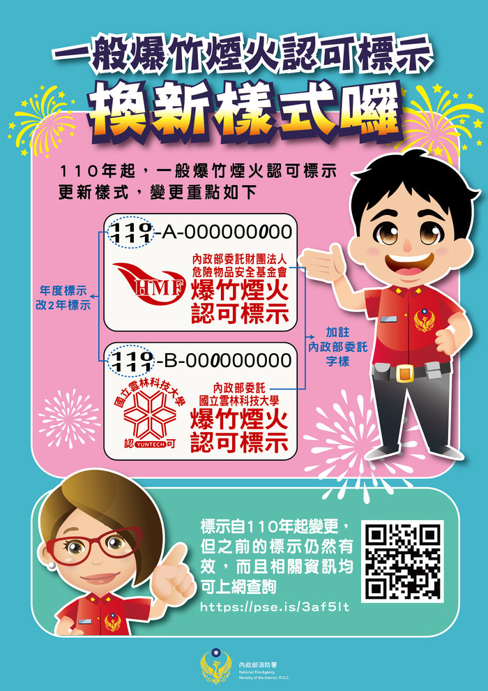 1、在購買施放爆竹煙火時,應選購貼有內政部爆竹煙火「認可標示」之合格產品,以維護安全。