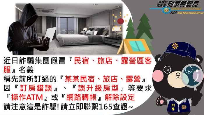 東莒派出所-訂房詐騙宣導 --閱讀人次 : 492 詐騙集團假冒『各民宿.旅館.露營區』訂房客服