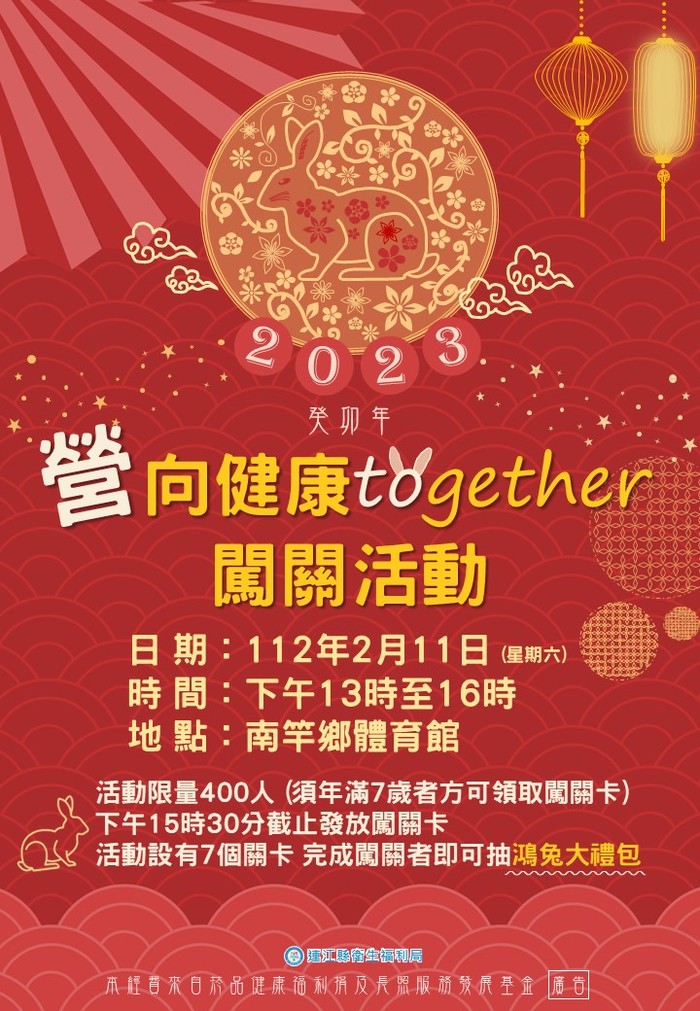 為積極推動健康活躍老化與預防及延緩失能概念,以建構支持性環境,連江縣社區營養推廣中心辦理多元化議題衛教闖關活動,以增進民眾健康識能,並鼓勵健康與亞健康長者與家人們一同走出家門。📌活動日期:112年02月11日(星期六)