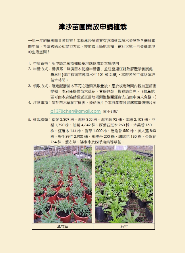 津沙苗圃開放申請植栽