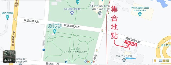 集合地點:外交部前面的凱達格蘭大道上