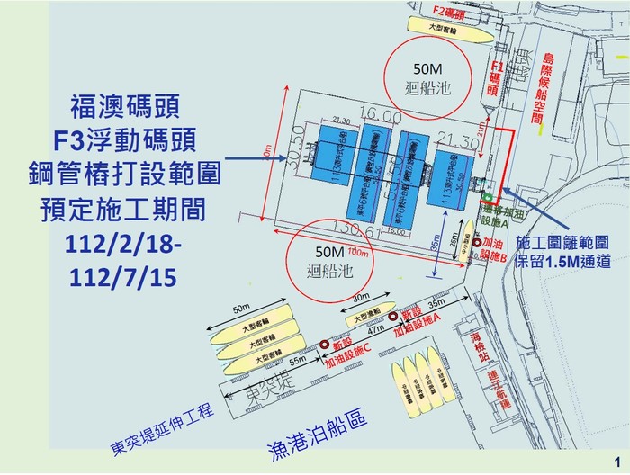福澳碼頭F3浮動碼頭鋼管樁打設工程預定112/2/18-112/7/15開始施工