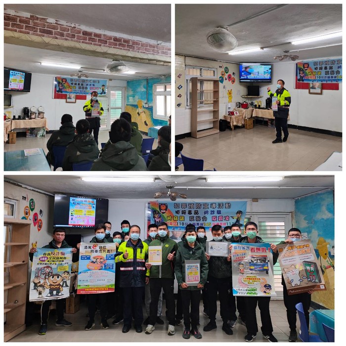 東莒派出所警員張耀楠23日配合莒光日為莒光守備大隊東莒機械化歩兵連國軍弟兄們帶來實用的「反詐騙」宣導!