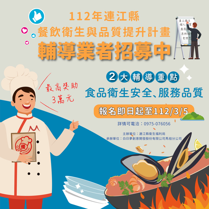 連江縣衛生福利局為鼓勵餐飲業者落實餐飲衛生自主管理,配合中央政策,