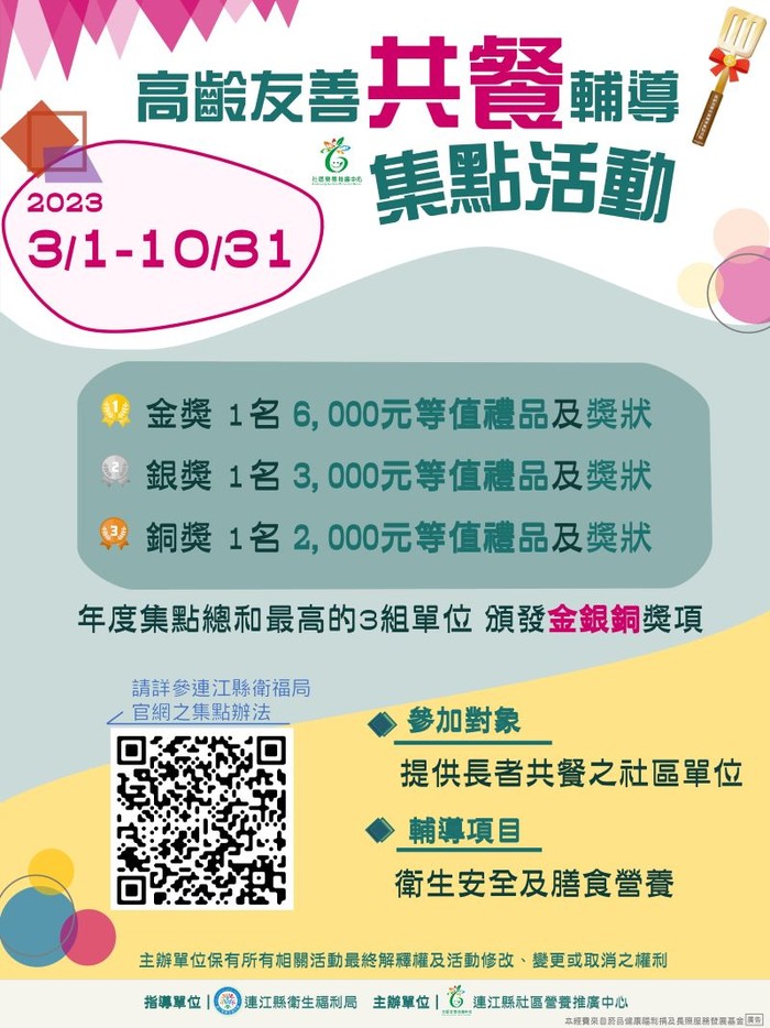 誠摯邀請各社區長者共餐單位一同加入輔導,共同邁向高齡營養新食代。